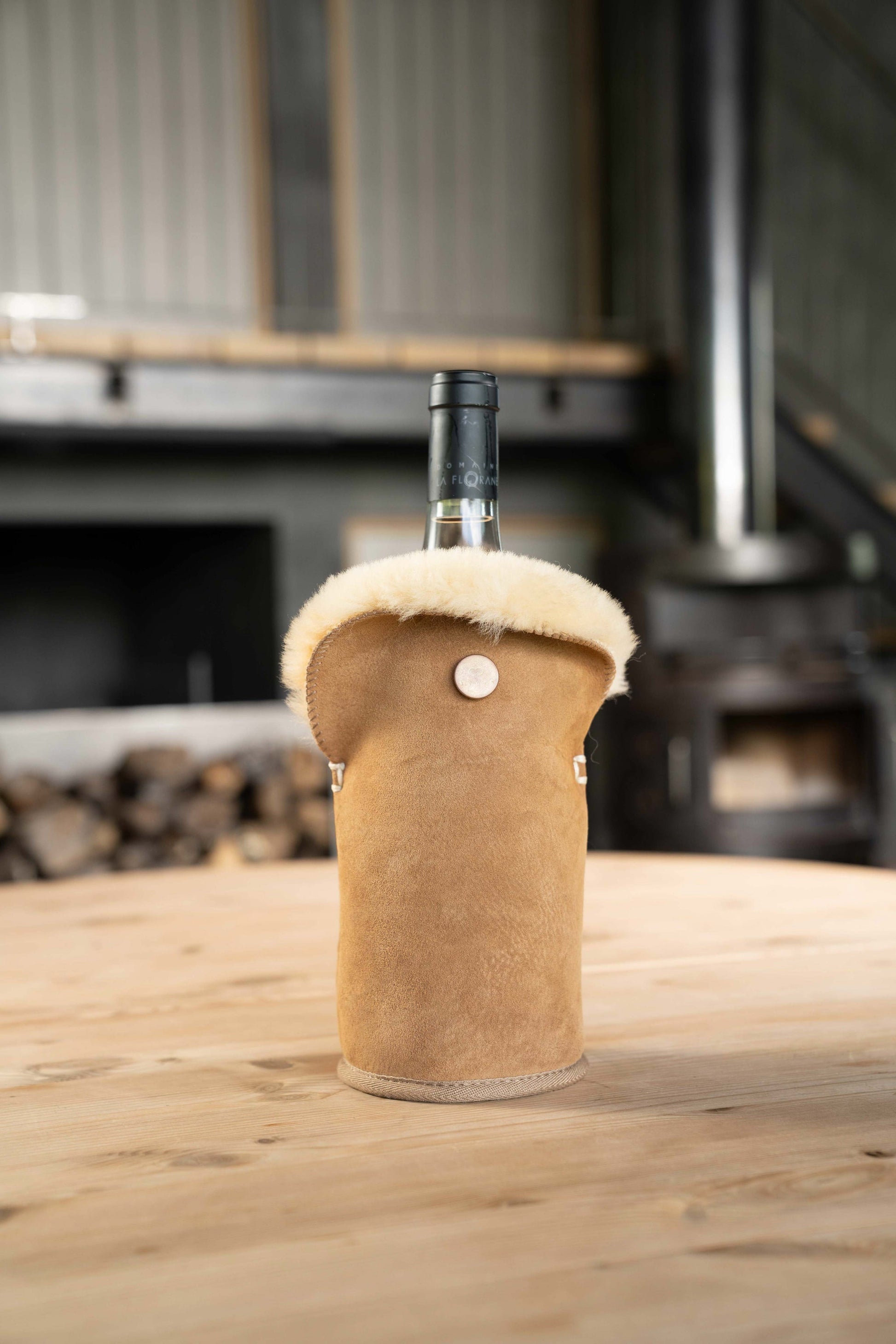 De buitenzijde is uitgevoerd in luxe camel suède, terwijl de binnenkant van 100% schapenvacht zorgt voor uitstekende isolatie. Zo blijft je gekoelde wijn of champagne urenlang op de juiste temperatuur – ideaal voor diners, picknicks en feestelijke gelegenheden.